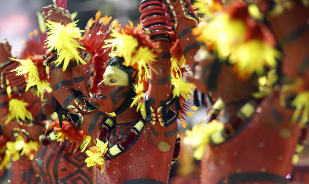 A reveller from the Viradouro samba school participates in the annual carnival parade in Rio de Janeiro’s Sambadrome, February 15, 2015. REUTERS/Ricardo Moraes (BRAZIL – Tags: SOCIETY)