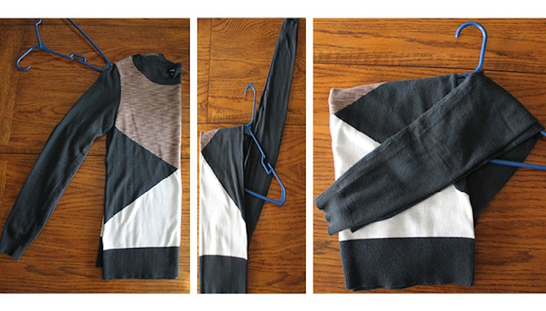 It’s always a fun feeling to realize you’ve been doing something wrong your whole life (Did you know the correct way to say “suggest” is “sug-jest?” Mind blown.) You’ve probably been hanging your sweaters up incorrectly your entire life. To prevent stretching out the neck and getting involuntary shoulder-pads, fold your sweater around the hanger, not draped over top.