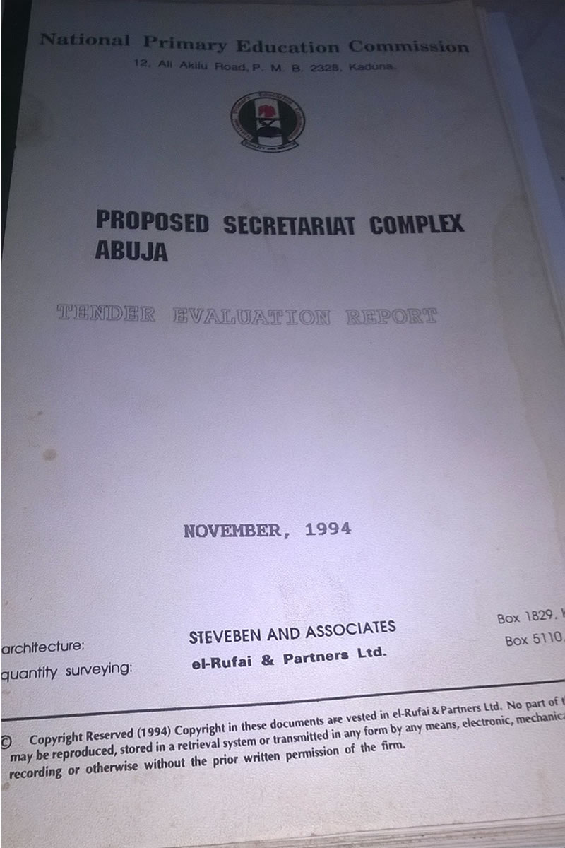 The reported was dated November 1994, and jointly signed by El-rufai and Partners as the consulting quantity surveyors and Steveben and Associates who were architects of the project.