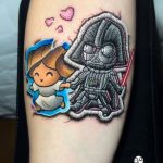His tattoos are a celebration of pop culture, childhood memories, and personal expression.