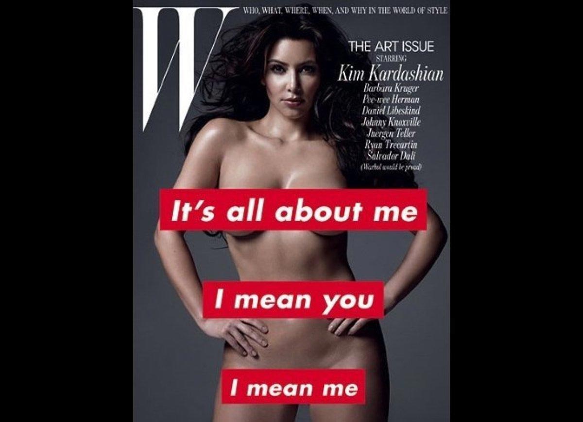 When Kim Kardashian appears in the buff for any magazine, it’s always controversial. In this case, the celeb posed for W Magazine’s November 2010 cover with her lady bits covered by a tagline by artist Barbara Kruger. Additionally and perhaps more controversial were the outtakes of this shoot in which Kardashian is naked and dipped in silver paint.