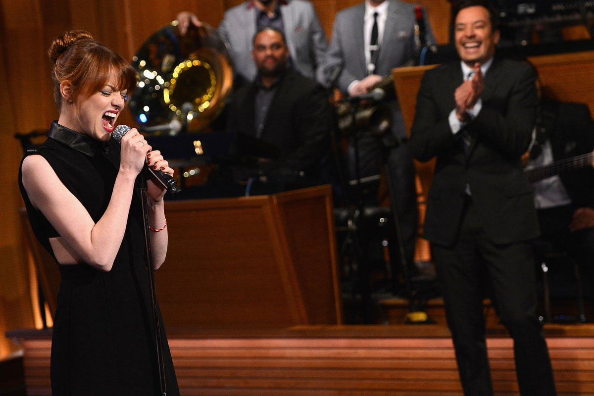 Fallon put on quite the show too, as he took on Iggy Azalea’s “Fancy” and Styx’s hit “Mr. Roboto.” But alas, Stone stood out, shocking everyone with her beyond impressive rap-lip syncing skills.